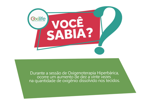 Durante a sessão de Oxigenoterapia Hiperbárica ocorre um aumento de dez a vinte vezes na quantidade de oxigênio dissolvido nos tecidos.